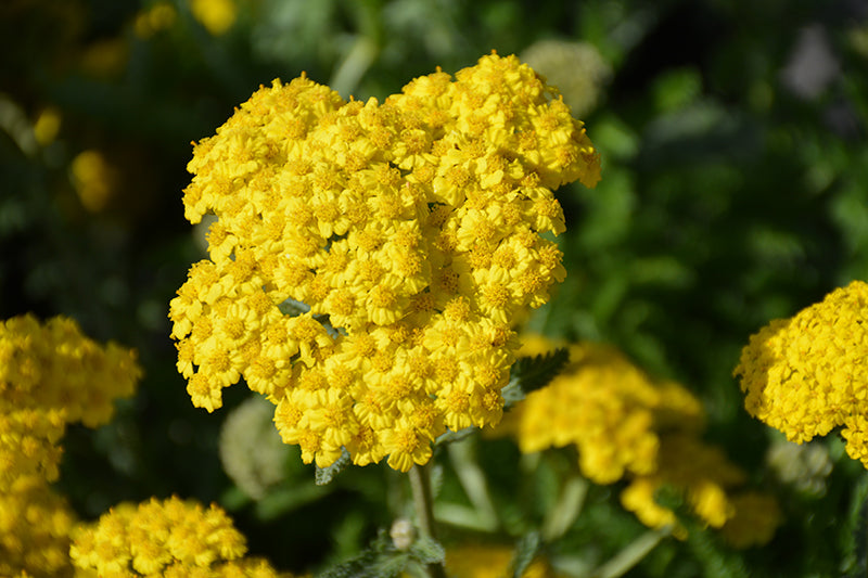 A compact variety presenting large clusters of bright yellow flowers in summer, over tidy clumps of finely cut gray-green foliage; removing spent flowers encourages re-blooming; perfect for small garden spaces and containers